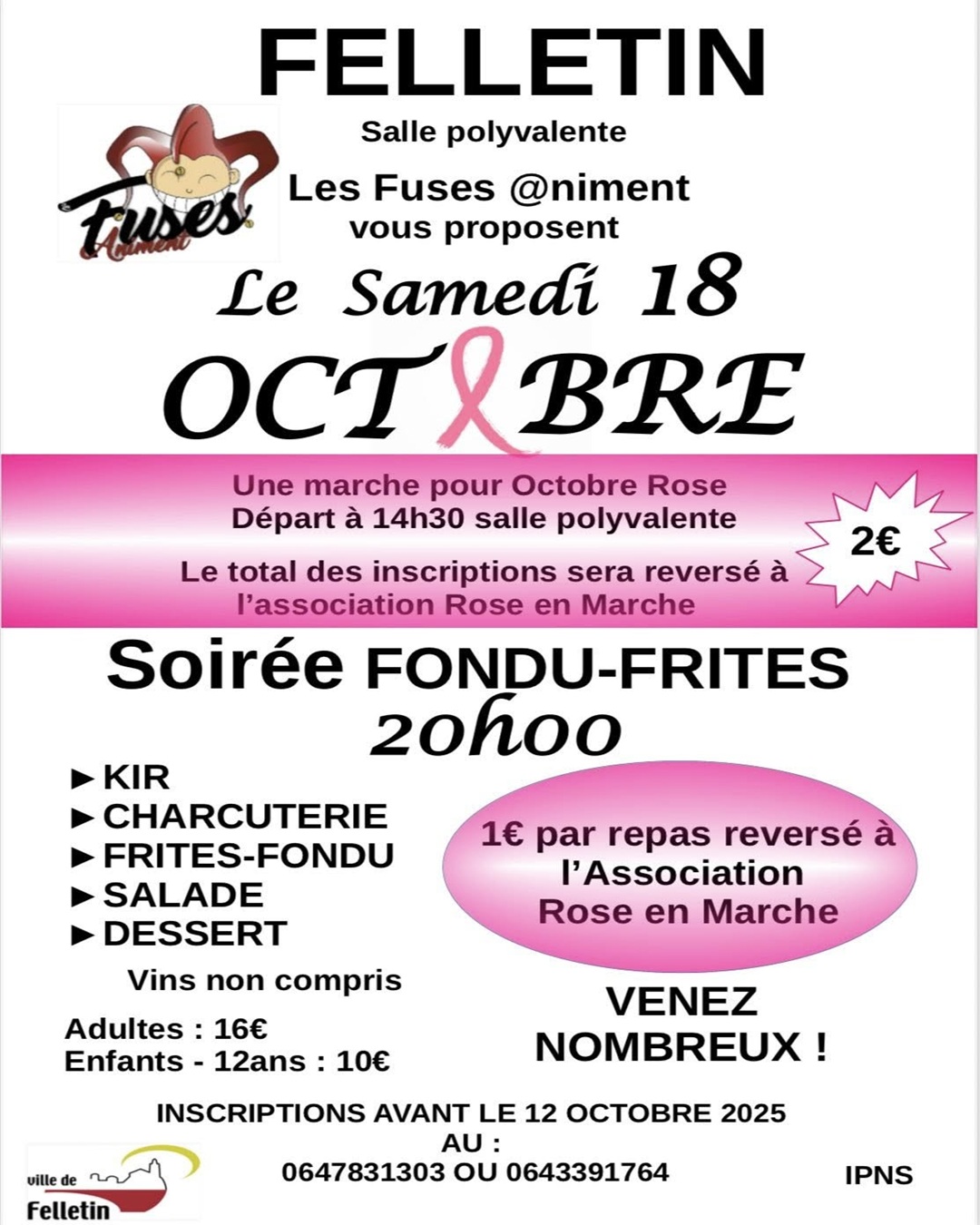 Le comité des fêtes, Les Fuses Animent, organise 2 actions dans le cadre d’Octobre Rose :